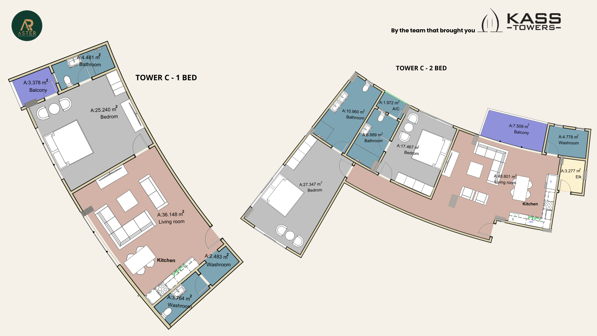 Aster Residence offers thoughtfully designed one and two bedroom apartments across Towers A, B and C. Every apartment has been designed with space, comfort, and functionality in mind.